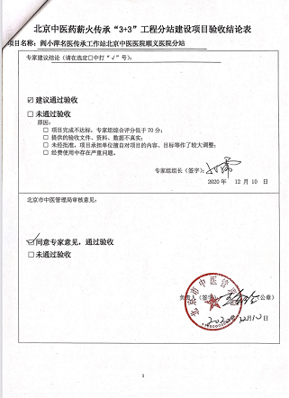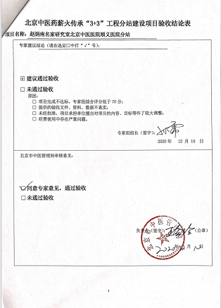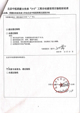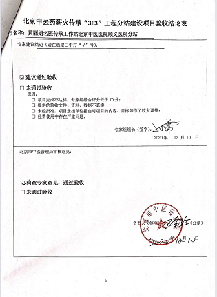 2020年12月,我院2个全国基层名老中医药专家传承工作室和6个市级分室站顺利通过北京市中医管理局的验收。