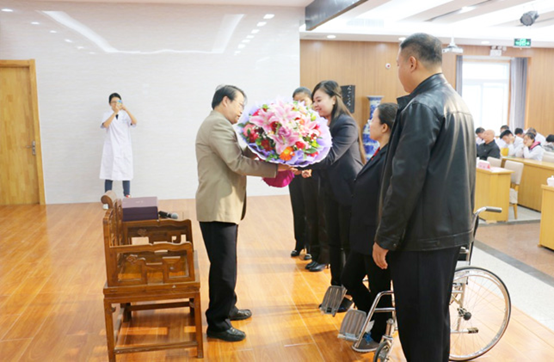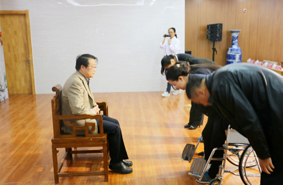 随后刘红旭主任代许心如教授进行收徒拜师仪式,气氛庄重、严肃。仪式采取传统的拜师模式,学生宣读拜师帖,向老师行拜师礼、敬茶、赠礼、献花,老师宣读师训并向自己学生赠送中医经典名著作为回礼。