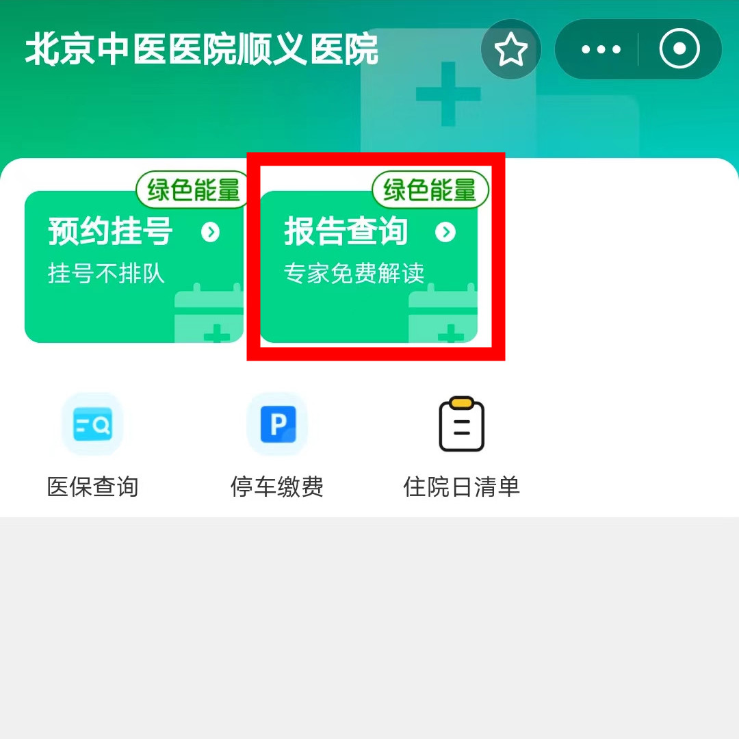 ② 在检索页面中点击“北京中医医院顺义医院” 即可进入自助服务小程序