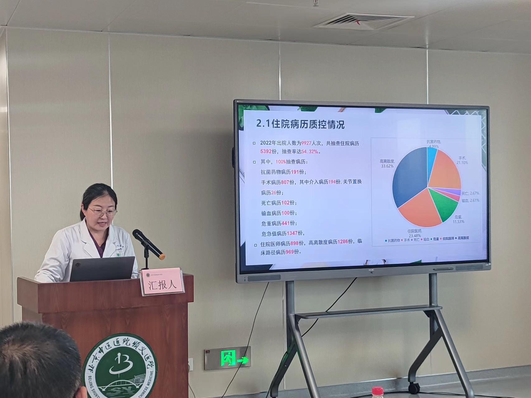 质控办主任毛燕、医工处处长张力、院感办主任陈红燕和输血科主任赵晓慧分别反馈病案管理委员会等五个委员会工作情况,医患关系部主任杜斐汇报了2022年医疗纠纷和12345接诉即办工作情况分析,最后由医务处处长杭颖反馈2022年度医疗质量管理工作,重点对医疗救治工作、医疗安全管控工作、临床路径管理工作、医疗技术管理工作、手术管理等工作情况进行了分析,对2023年医疗质量管理重点工作进行了部署。各委员就相关委员会上报工作进行讨论,提出建议和意见。