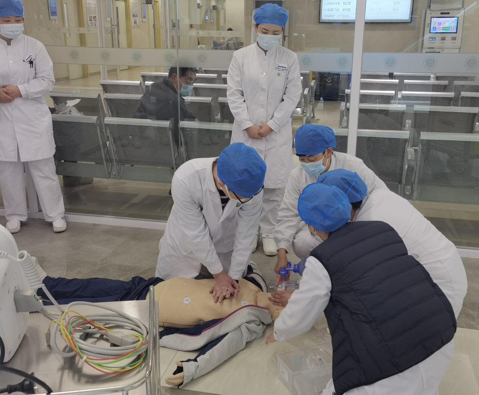 为提高门诊医护人员对于突发事件的应急反应和处置能力,保障来院患者的安全,3月22日下午门诊部举办了患者突发心脏骤停的应急演练。