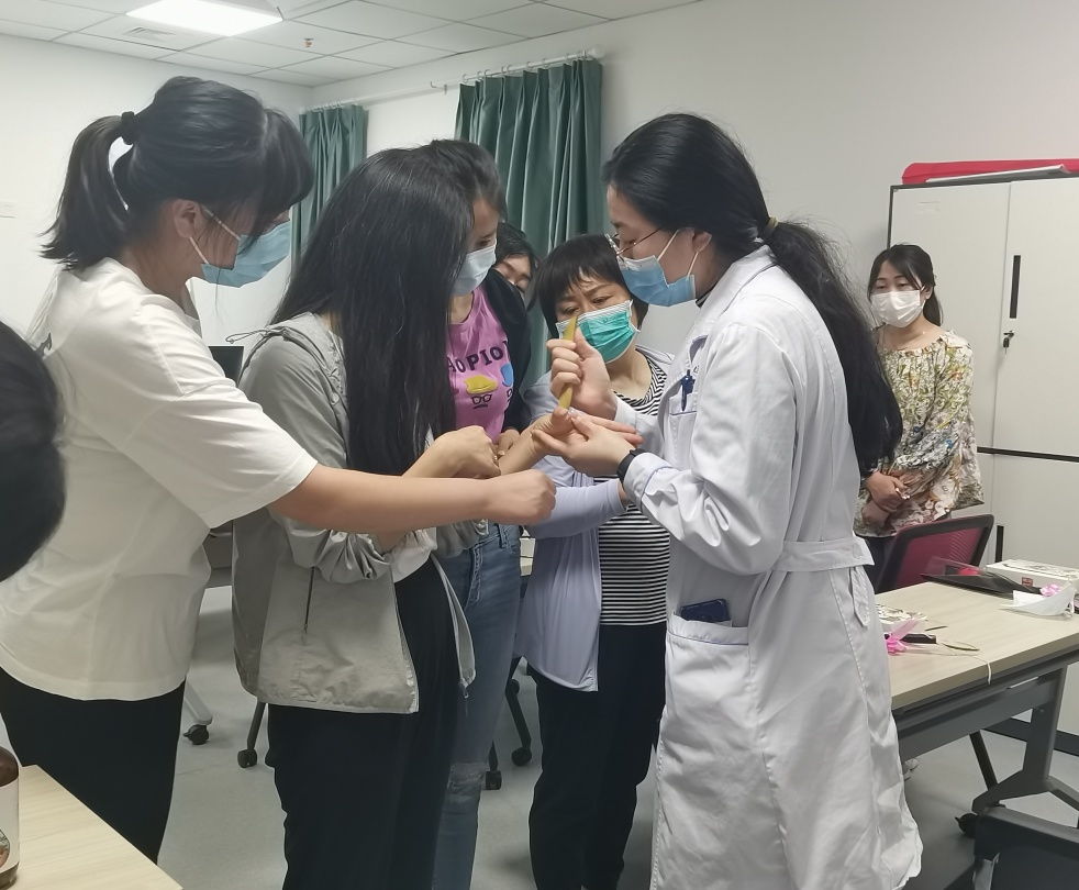 5月14日下午,妇产科开展母亲节送健康活动,针对有乳腺增生、乳房胀痛、产后泌乳较少等乳房不适问题的女性,开展乳腺健康宣教、保养项目体验等活动。针对乳腺健康、母乳喂养、产后乳房护理等问题,妇产科医护团队一一耐心的宣讲保健知识。现场还给有需要的女性朋友,进行以房家无痛按摩通乳术结合中医点穴疗法来舒通乳络、疏肝理气,并开展了耳穴压豆、调理茶包、刮痧等多种中医特色疗法的项目体验,现场气氛热情洋溢,营造了关爱乳腺健康的良好氛围。