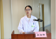 在观看了医院38年来发展历程的宣传片后,北京中医医院顺义医院魏青书记的致辞。他代表医院全体教师对三所院校的领导、嘉宾、区卫健委领导及全体实习生的到来表示热烈的欢迎,同时希望同学们再未来的一年中,能直面困难,勇往直前,去实现自己的理想,提升自己的价值。