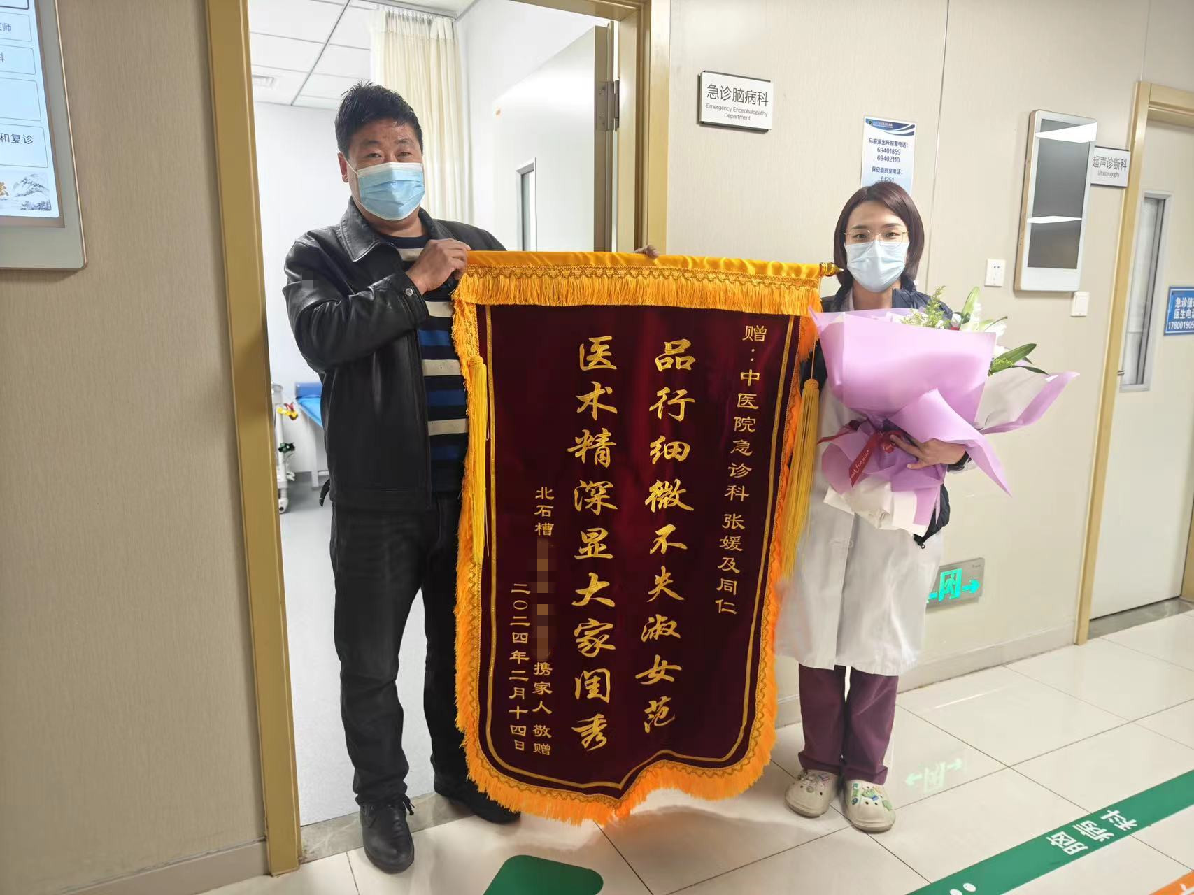 2024年2月,张媛医师正在急诊脑病科值班之时收到了患者韩奶奶家属送来的一面锦旗,上书“品行细微不失淑女范,艺术精深显大家闺秀”是对张媛医师最真实的描述和最真挚的认可。