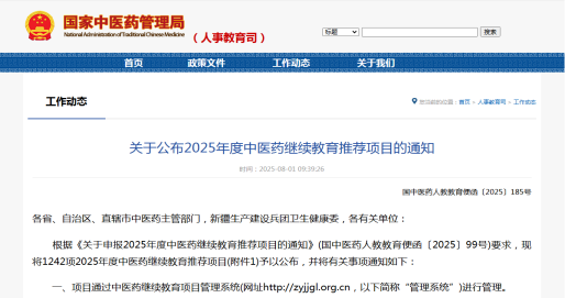 近日,国家中医药管理局人事教育司(国中医药人教教育便函[2025]185号)公布了2025年度中医药继续教育推荐项目获批立项名单,其中,北京中医医院顺义医院肾病科获批一项2025年度国家中医药管理局中医药继续教育项目。