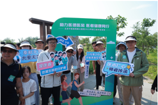 此次活动全程2.5公里,职工们沿着红色跑道,穿梭在公园的湖光树影间,在沿途设置的“大爱无言”“医路同行”等创意打卡点合影留念;在“精准医疗”游戏环节投掷沙包,职工在欢笑中加深了团队意识,顺利完成这场充满活力与意义的健康之旅。