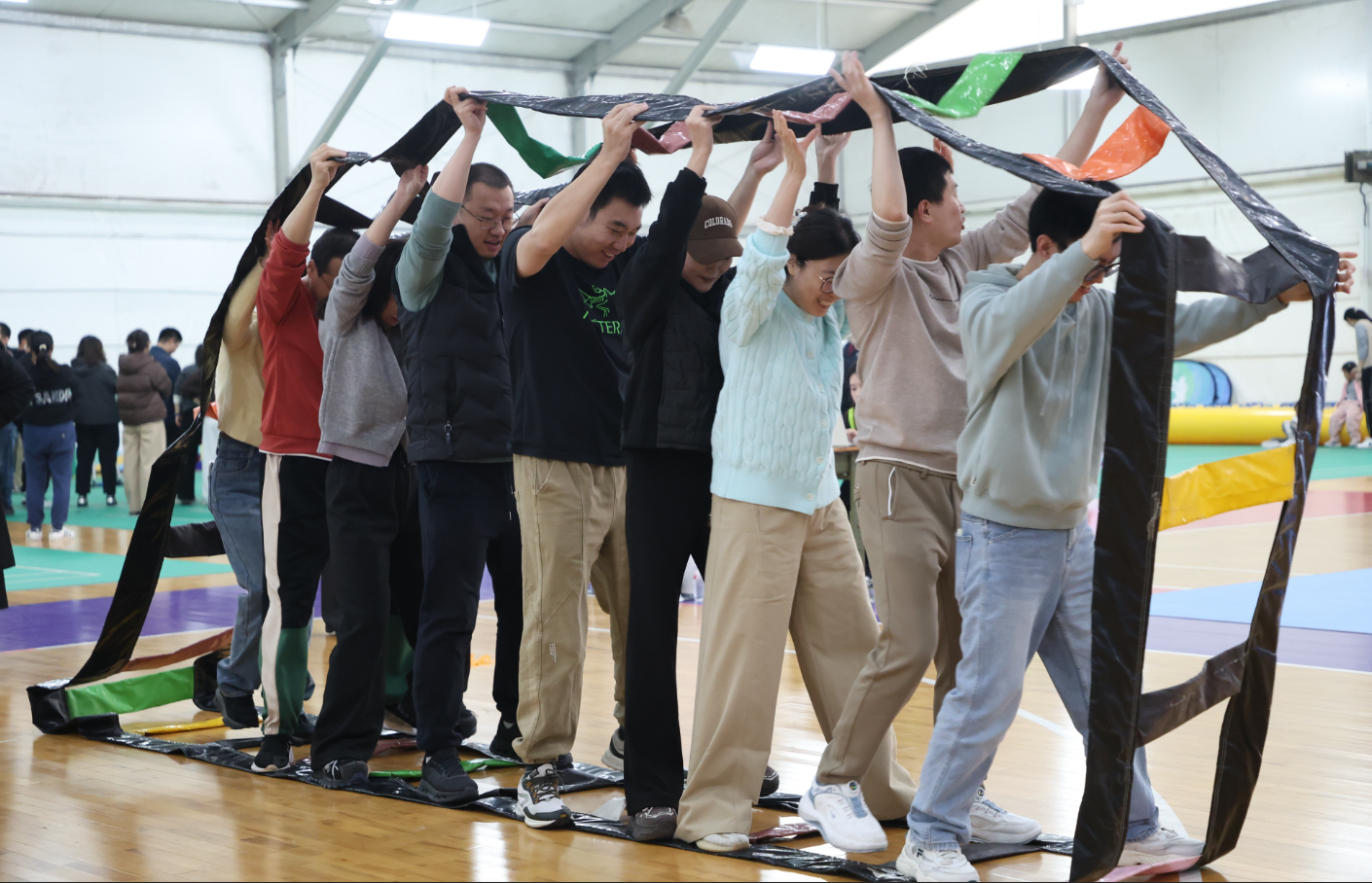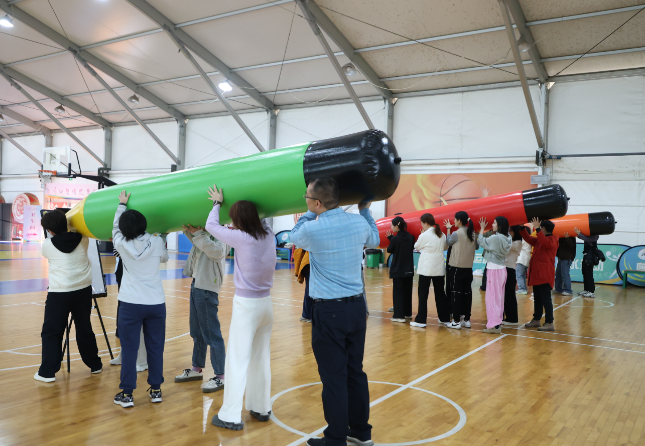活动伊始,热身教练带领大家舒展肢体、活动关节,为接下来的比赛做好了充分准备。随后,各队伍有序进入比赛场地,趣味运动会正式开始。