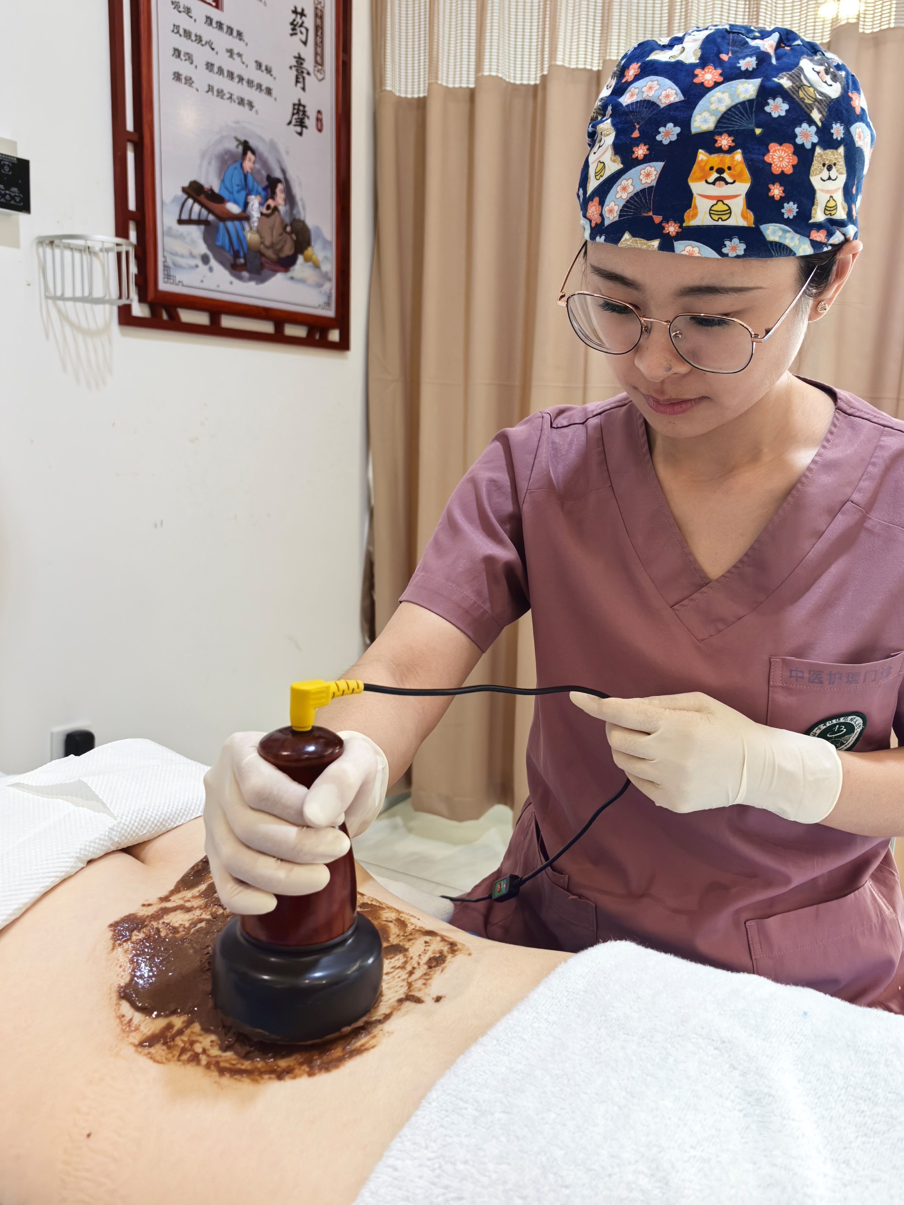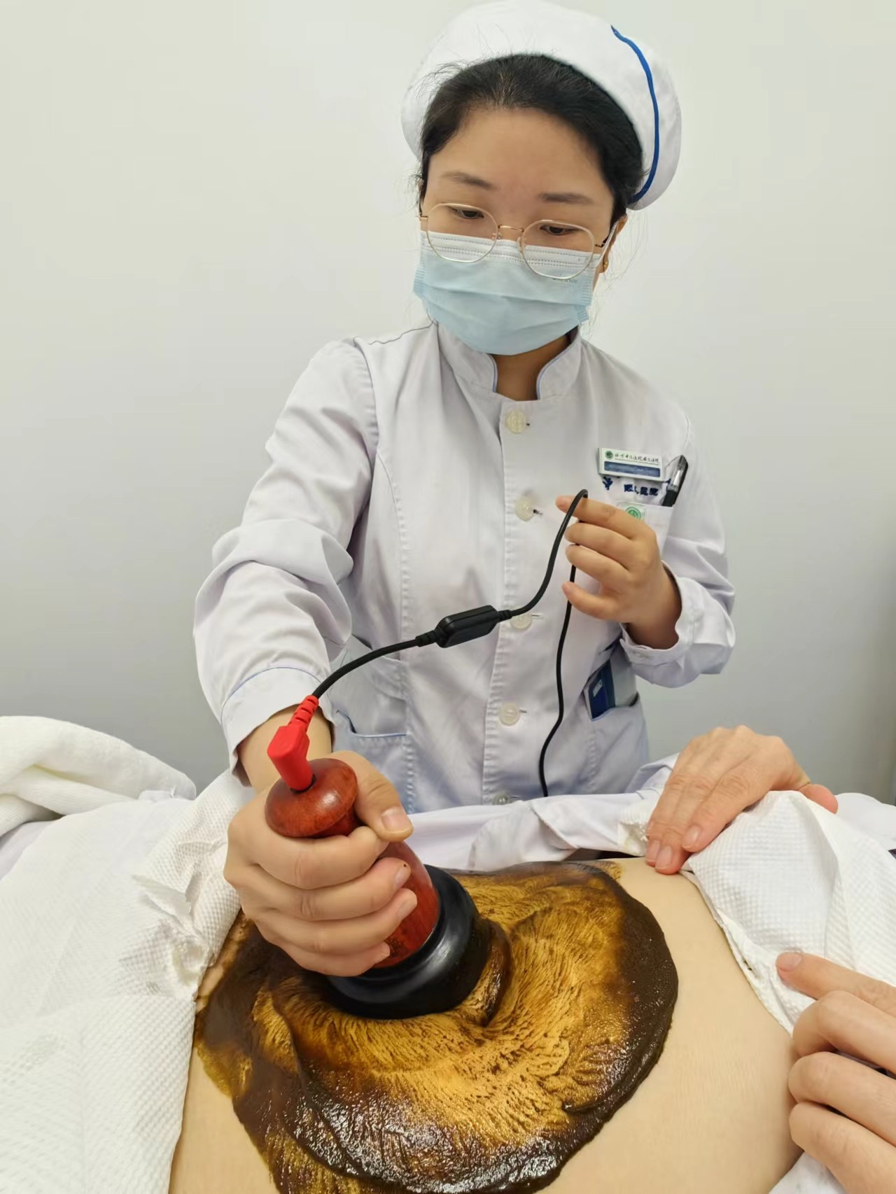 砭石疗法疗法是将中药膏涂于患者局部皮肤,再采用砭石仪热熨的一种中医外治方法。砭石疗法可刺激人体的经络和穴位,所用中药膏可温中理气、活血化瘀,砭石仪加热促进药物吸收,从而调动人体内正气,使机体血气通畅,促进机体功能恢复。