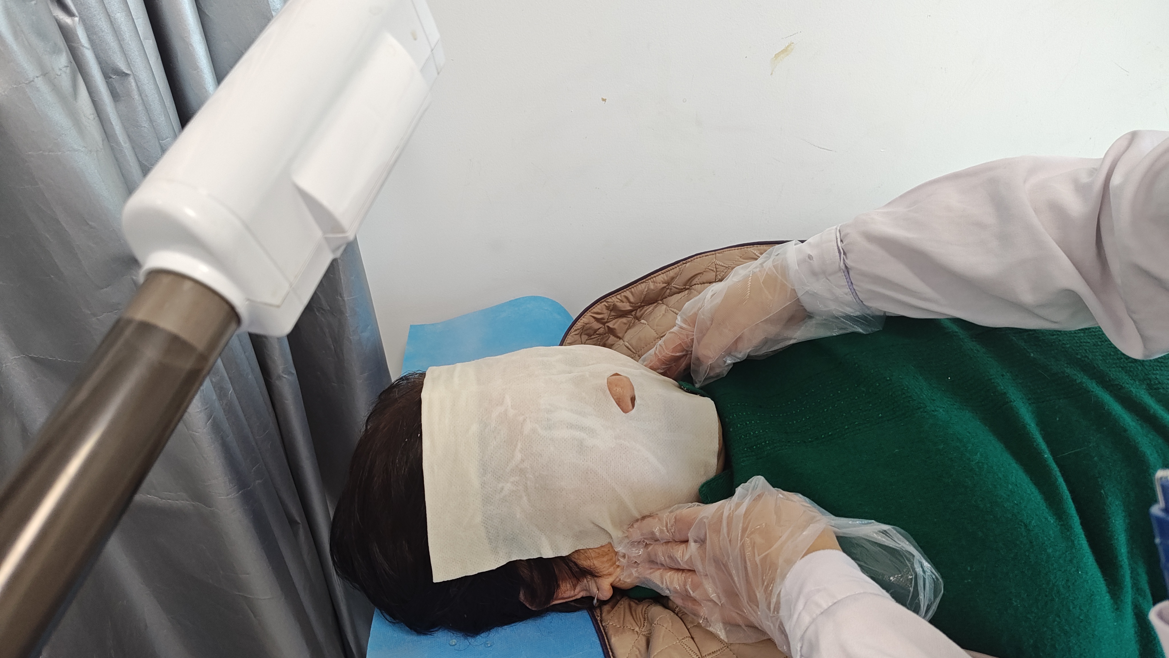 技术介绍:皮肤科开展的中药塌渍治疗是通过将饱含药液的纱布湿敷于皮损局部,通过湿敷和药物的双重作用,给皮损开了个“小空调”,减轻皮损部位的水肿和炎症,让被湿、热、毒邪困扰的皮肤能“喘口气”,达到抑制局部炎症反应、减少组织液渗出、促进修复、调节皮肤状态的效果。